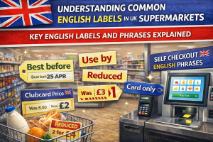 イギリスのスーパーでは、英会話そのものよりも、値札・棚・パッケージ・レジ画面に書かれた英語表示で戸惑うことがよくあります。特に初めての英国生活では、Best beforeUse byReducedCard only などの意味がわからないと、買い物が少し不安になりがちです。食品の日付表示や栄養表示、会員価格の仕組みは公的機関や大手スーパーでも案内されており、知っておくと日常の買い物がかなり楽になります。